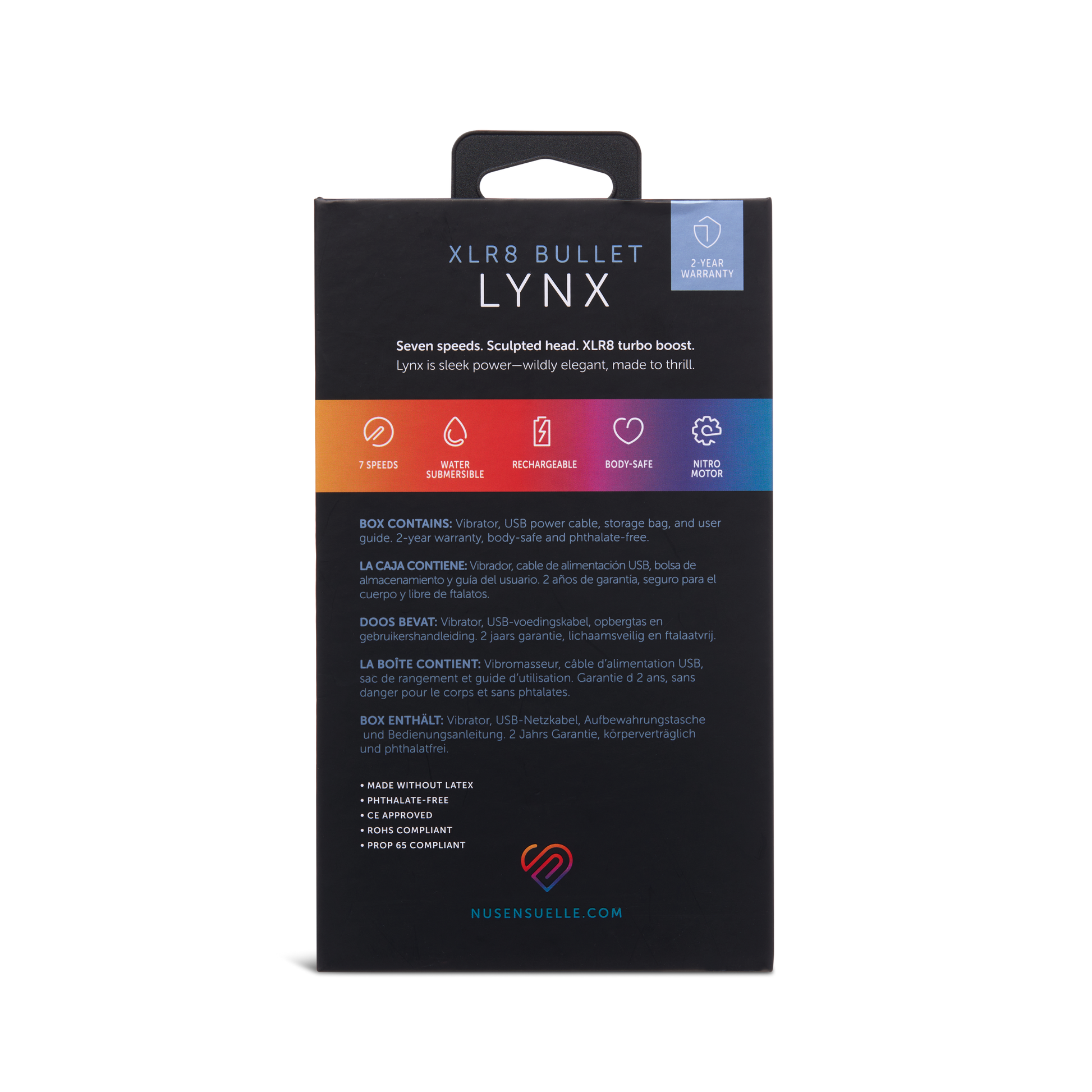 The Lynx bullet pushes the limits, unleashing unapologetic power in a sleek, refined form. Driven by the Nitro motor, it delivers seven intense speeds and XLR8 turbo boost for a rush of raw sensation. Wrapped in smooth, sumptuous silicone, Lynx's bold, bulbous head and subtle tilt are sculpted for defined, fierce pleasure. Lynx isn't here to play by the rules; it's here to thrill.