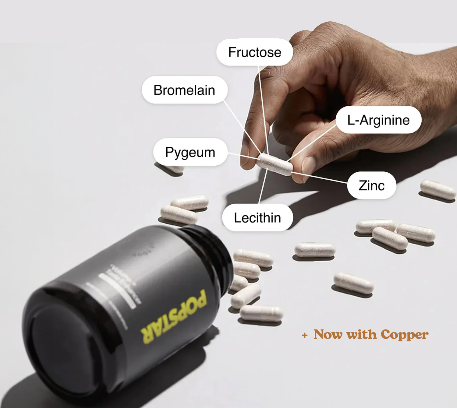 Zinc, Copper, Sunflower Lecithin, L-Arginine HCI, Bromelain, Pygeum Extract, Fructooligosaccharides. Popstar is made with the highest quality, organic, non-GMO ingredients, manufactured in the USA at a GMP certified, USDA organic, & BBB accredited facility.